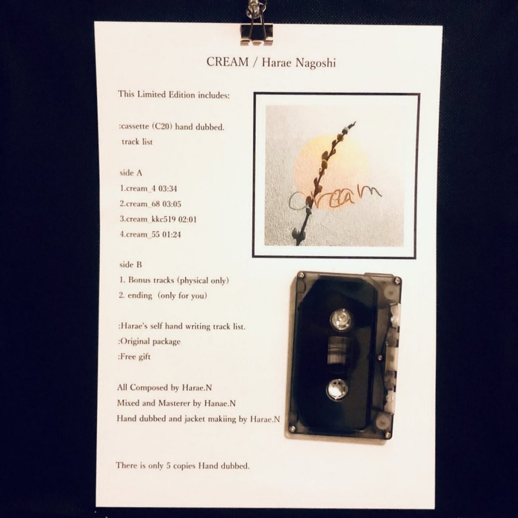 Harae Nagoshi – Cream 0 July 9, 2019 Written by Joyful Union Cassette Blog Harae Nagoshi’s latest self-released album ‘Cream’ is out now.Purchase Cassette: Harae Nagoshi – Cream Share this: Share on X (Opens in new window) X Share on Facebook (Opens in new window) Facebook Like Loading... Related