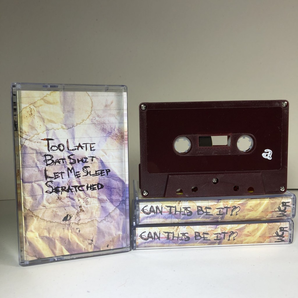 Too Late, BatShit, Let Me Sleep, and Scratched’s latest album ‘Can This Be It??’ is out now on Wet Cassettes. This tape is sold out.