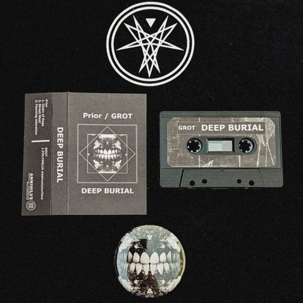 A conjoined freak, a two-headed calf, a union of filth and decay, the deep, lo-fi darkness of PRIOR is balanced perfectly with the grotesque rawness of GROT; ,DEEP BURIAL, is a concatenation facilitated by circumstances not likely to recur, the result of friendships made during the end times, of strangers joining hands to ring in the dawn of armageddon.