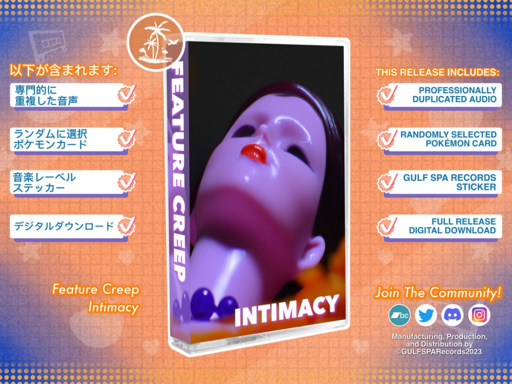 Feature Creep – Intimacy 0 February 20, 2023 Written by Joyful Union Cassette Blog Feature Creep’s latest EP ‘Intimacy’ is out now on Gulf Spa Records. Purchase Cassette: Feature Creep – Intimacy Share this: Share on X (Opens in new window) X Share on Facebook (Opens in new window) Facebook Like Loading... Related