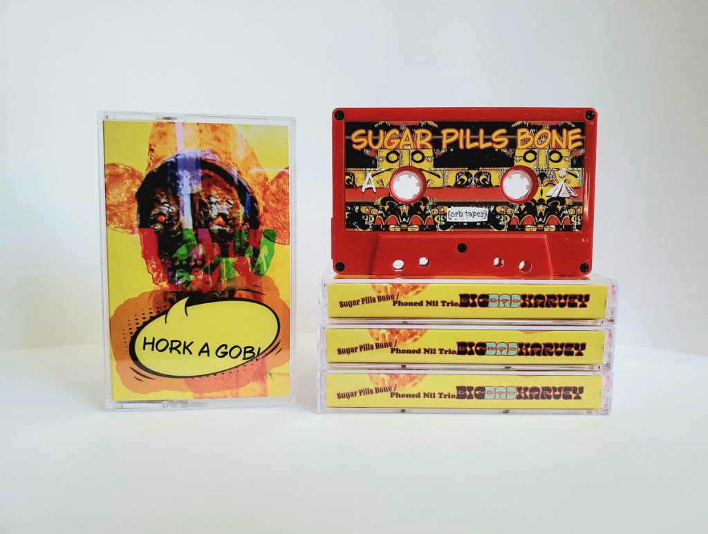 Sugar Pills Bone and Phoned Nil Trio’s latest split tape ‘Bigbadharvey’ is out now on Orb Tapes.