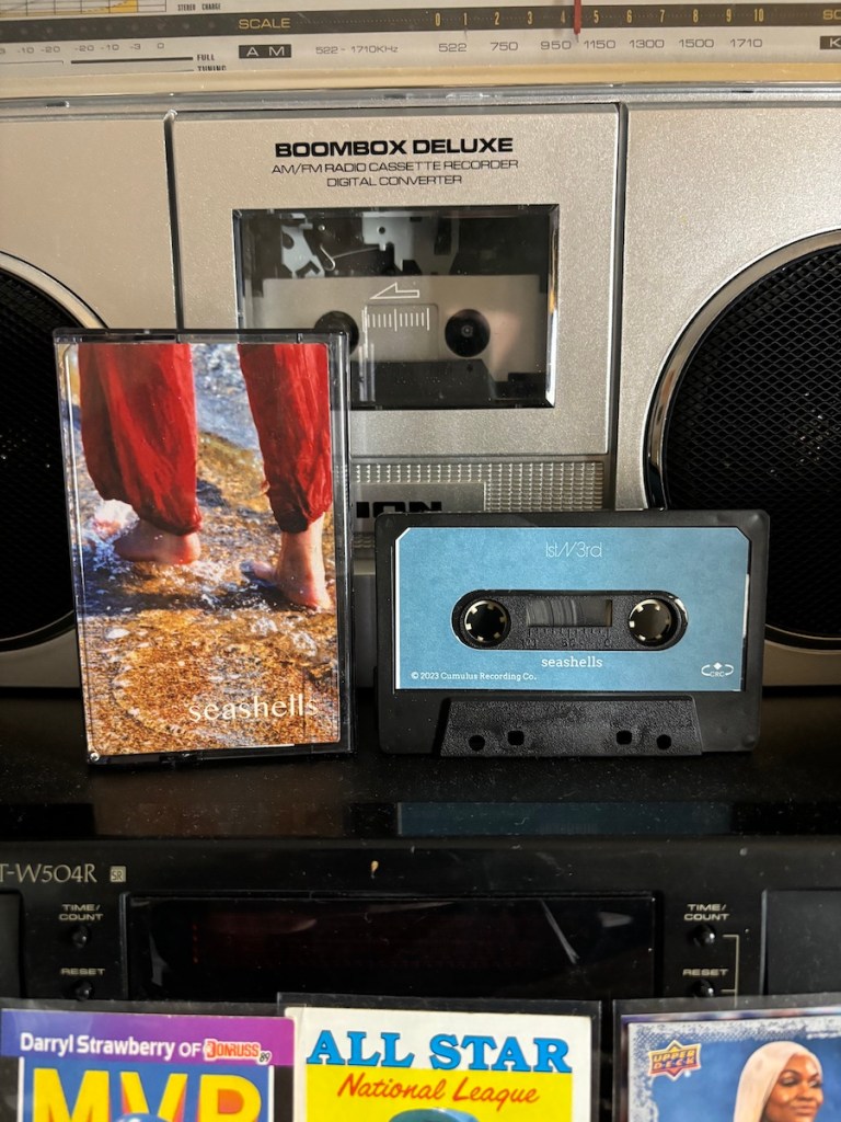 ‘seashells‘ UNFOLDS AS A LIVE BLEND OF DRUMS AND SAMPLES EMPLOYING THE TECHNOSELF METHOD, WHILE ‘rugged tranquility‘ OFFERS ONE OR TWO-TAKE JAMS ON THE SP, EACH AN HOMAGE TO THE TRADITION OF INSTRUMENTAL BEATS. THE EXTREMELY LIMITED EDITION CASSETTE, WITH FIVE COVER VARIATIONS, IS AVAILABLE NOW ON Cumulus Recording Company.
