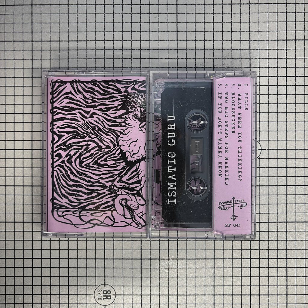 ISMATIC GURU is back with a new EP of guitar music by two unstoppable idiots: John Toohill and Bran Schlia. Scrambled up, freaked out new wave/post-punk using every groovy move in the book. Paired with snarky, strange, slice of life lyrics that storm every subject from takin pills, marveling at incredibly stupid people, avoiding vampires, and stepping in dog shit. 5 songs in 6 mins overflowing with ideas as unique as they are catchy. Out now on Swimming Faith Records.